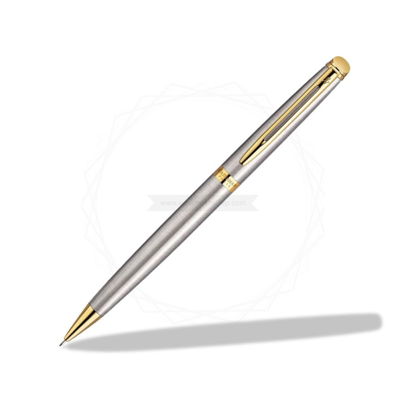 Automatyczny ołówek marki Waterman w stalowym kolorze oraz ze złotymi wykończeniami. To kwintesencja stylu oraz najwyższej jakości. Do powstania ołówka użyto materiałów o najlepszych parametrach i świetnej jakości, które zapewniają mu doskonałą jakość wykonania oraz najlepsze parametry pisania. Ołówek Waterman posiada obrotowy mechanizm wysuwający wkład. Ma szczupły korpus, jest lekki i miły w dotyku. Świetnie leży w dłoni, sprawiając, iż pisanie jest komfortowe oraz bardzo przyjemne.